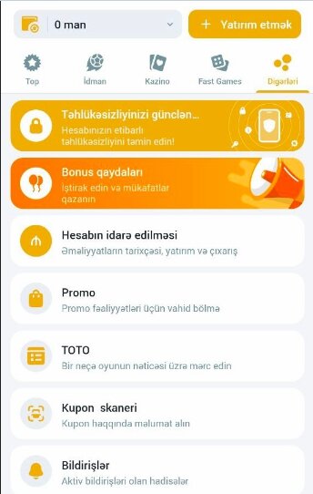 - Pulsuz mərclər və spinlər üçün promosyon kodlarının alınması və dəyişdirilməsi imkanı.